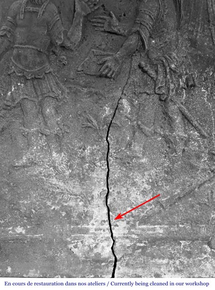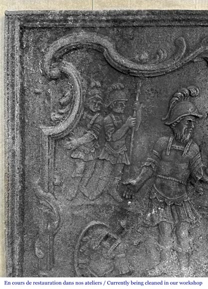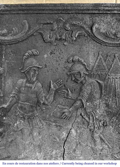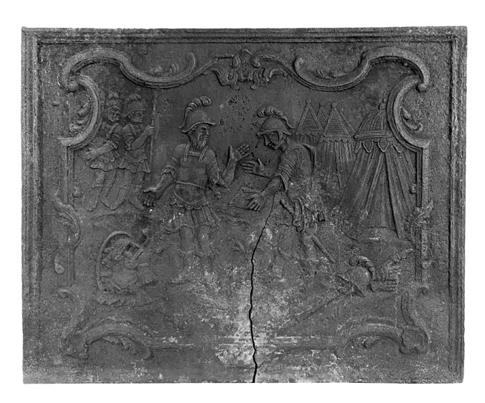 " La querelle entre Ulysse et Ajax", plaque en fonte représentant une scène de l'Iliade