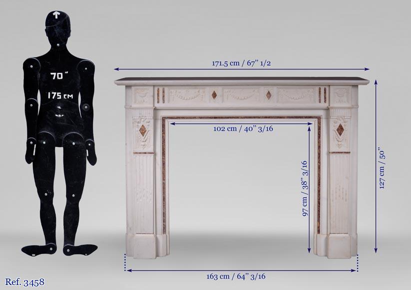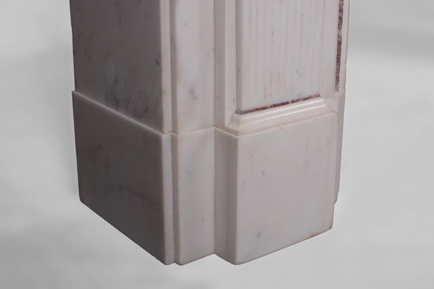 Belle cheminée ancienne de style Victorien en marbre Statuaire de Carrare et Brocatelle violette aux guirlandes et aux losanges, fin du XIXe siècle