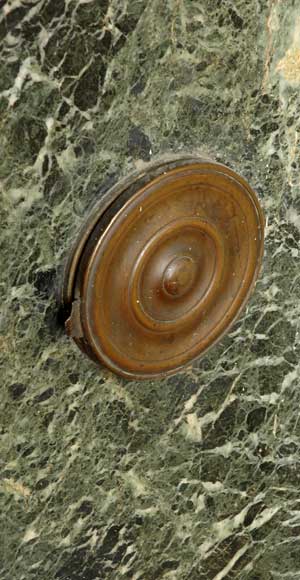 Cheminée à hotte en marbre vert de mer et rouge griotte