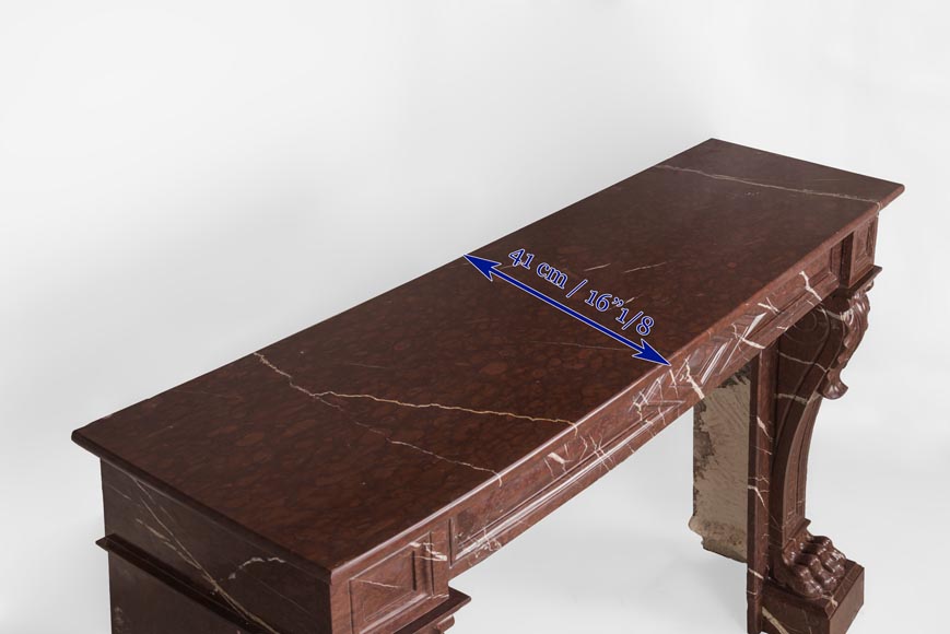 Cheminée ancienne de style Napoléon III en marbre Rouge Griotte aux pattes et feuilles d’acanthe
