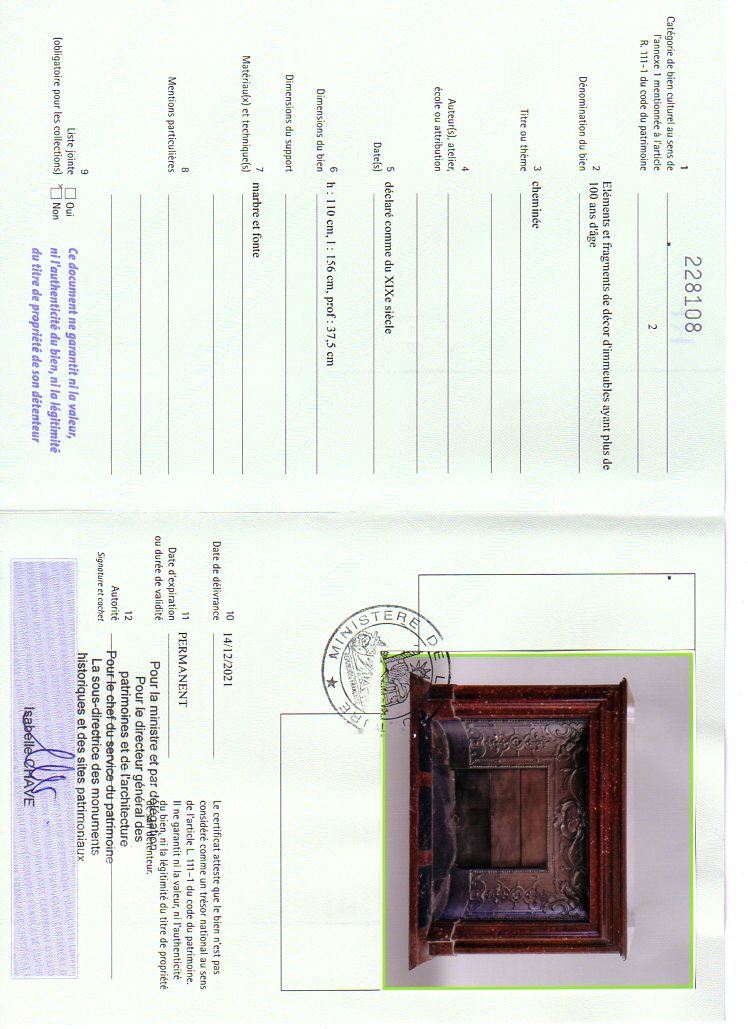 Cette cheminée est vendue avec son intérieur en fonte d'origine et avec sa dalle foyère.