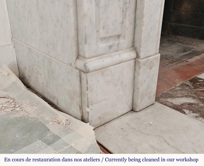 Cheminée de style Louis XV droite sculptée en marbre de Carrare