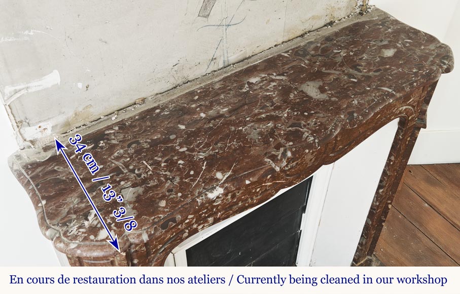 Cheminée de style Louis XV modèle Pompadour plate, en marbre rouge du Nord