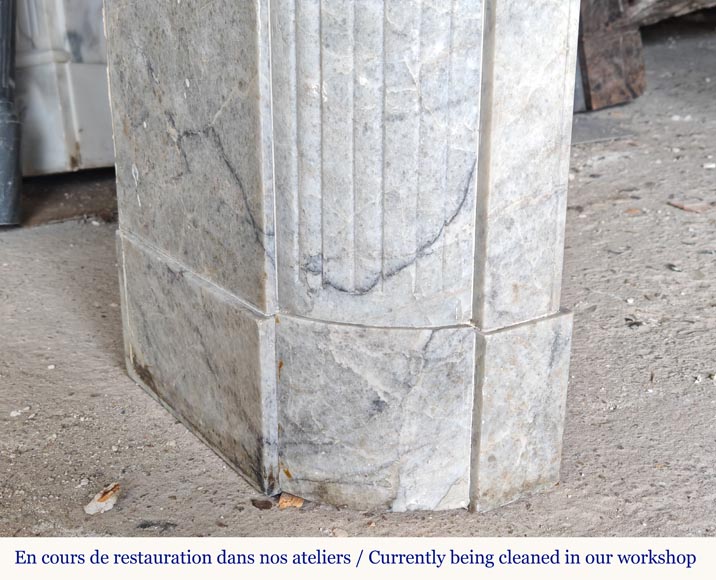 Cheminée de style Louis XVI à coins arrondis et fleur de tournesol sculptée en marbre cristalin