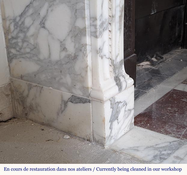 Cheminée de style Louis XVI en marbre Arabescato décorée d'une frise de perles