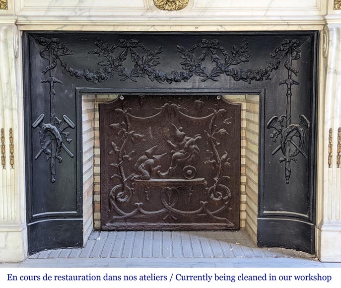 Cheminée de style Louis XVI en marbre de Carrare demi-statuaire