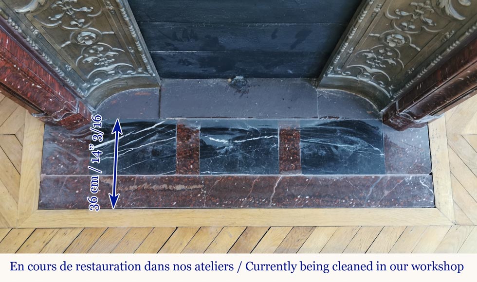 Grande cheminée ancienne de style Louis XIV en marbre Rouge Griotte