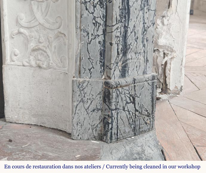 Petite cheminée de style Louis XV modèle Pompadour en marbre bleu Fleury