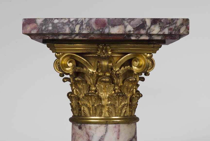 Très belle paire de colonnes en marbre Brèche Violette, Brocatelle Jaune et Levanto Rouge à ornements de bronze doré