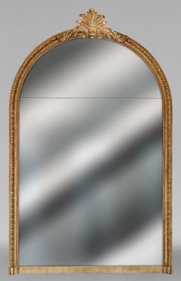 Le miroir au mercure est encadré d'un liseré perlé et d'une frise d'oves et surmonté d'une très belle coquille de feuilles d'acante en saillie.