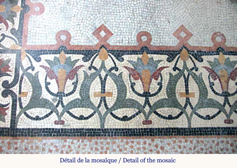 Giandomenico Facchina (1826 – 1903) était un mosaïste italien, restaurateur de mosaïques anciennes en Frioul puis à Venise. Lorsqu’il se rend compte que la politique artistique italienne mènerait à la décadence de l’art de la mosaïque, il décide de partir pour la France. Après une installation à Montpellier où il brevète une méthode pour enlever et rétablir sans dégradation les mosaïques anciennes, il est choisi par Charles Garnier pour la réalisation des mosaïques de l’Opéra de Paris. Il met en place une nouvelle méthode permettant un gain de temps et une réduction des coûts : au lieu d’exécuter les mosaïques sur place, il les exécute commodément sur une table et les met en place en bloc par vastes surfaces. Il reçoit une médaille d’or à l’Exposition Universelle de 1878 et est nommé par la suite Chevalier de la Légion d’honneur. Il a travaillé avec de nombreux architectes dans les dernières décennies du XIXe siècle pour contribuer avec ses décors de mosaïques à la polychromie architecturale. Parmi ces architectures, on peut nommer Sédille avec qui il collabore en 1875 pour les mosaïques de la façade du Printemps ou encore pour les ornements du tombeau de la famille de M. Brot au Père Lachaise. On lui doit aussi le très riche sol de mosaïque de la galerie Vivienne à Paris ou encore celui du Petit Palais et bien d’autres. Ainsi, c’est très certainement que Sédille a fait appel à lui pour la réalisation des mosaïques au sol de notre jardin d’hiver.