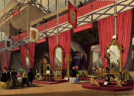 Ainsi la première Exposition Universelle se tint à Londres du 1er mai au 15 octobre 1851 au Crystal Palace. Le règne de Victoria démontra ainsi sa modernité et son adhésion à une philosophie libérale, où le commerce international serait garant de la paix et de l’épanouissement du génie humain.