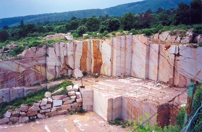 Les principales carrières se trouvent dans la région de Caunes-Minervois et Félines-Minervois au nord-est de Carcassonne. Exploitées dans l’Antiquité, elles sont redécouvertes vers 1615 par les sculpteurs italiens Stefano Sormano et Antoine Lignani, qui commenceront un échange des différents marbres de Caunes contre des marbres blancs de Carrare. Le célèbre sculpteur Bernin attire l’attention du Roi sur ces carrières, qui somme Claude-Félix Tarlé de les exploiter pour la Cour, puis les décrètes « carrières royales » en 1692. Le Rouge du Languedoc et le griotte sont alors les plus demandés, provenant du plateau de Terrables et de la Boriette, où l’on trouve également du Bleu Turquin . Il circule alors sous le nom erroné de « Griotte d'Italie ».