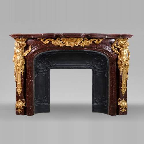 Cette fontaine d'angle présente une architecture et un décor en marbre de Carrare, et en Carrare Statuaire pour la figure centrale de la jeune enfant. Elle offre une symétrie parfaite.