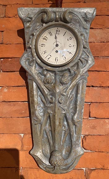 Au tournant du XXe siècle, la Maison Gentil & Bourdet a conçu cette ensemble en grès, dont chaque détail reflète leur expertise artistique. Ces créations en grès arborent un décor captivant, empruntant une influences néo-gothique. Un soupçon de l'essor naissant de l'Art Nouveau se dévoile à travers les motifs végétaux et la stylisation élégante d’autres éléments du décor. Cet ensemble, constitué à la fois d’une pendule et d’un baromètre, constitue un témoignage remarquable du génie créatif et des compétences céramiques de la maison Gentil & Bourdet.